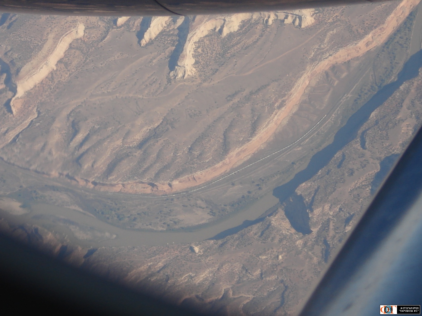 | Вид на грузовой поезд с самолета, США/Колорадо Автор: Евгений Лысый | Фото сделано 14.IX.2012, опубликовано 3.X.2016.