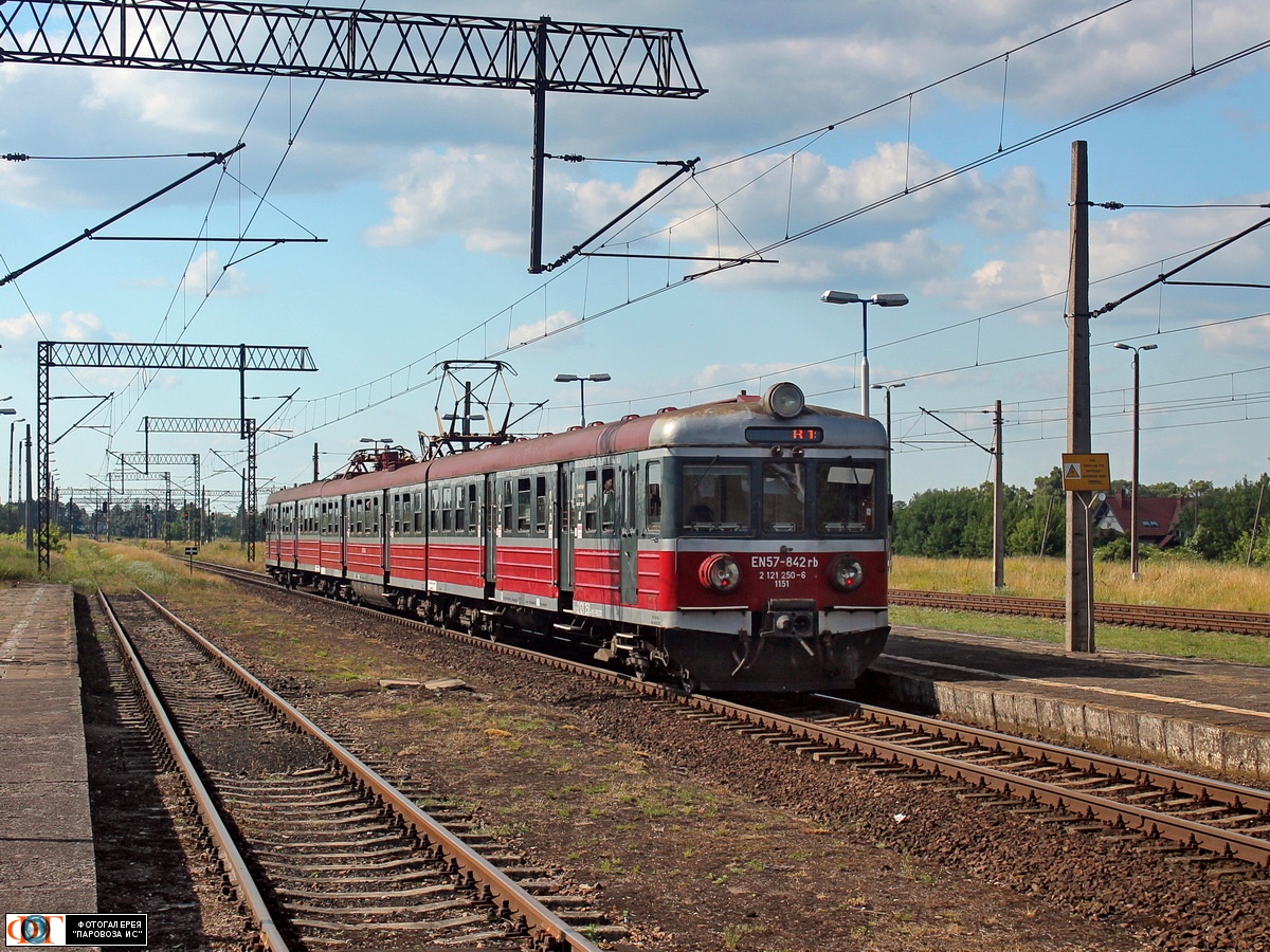 | Электропоезд EN57-842 на ст. Граево, линия Белосток - Элк, Польша Автор: Ал | Фото сделано 23.VI.2016, опубликовано 8.XI.2016.