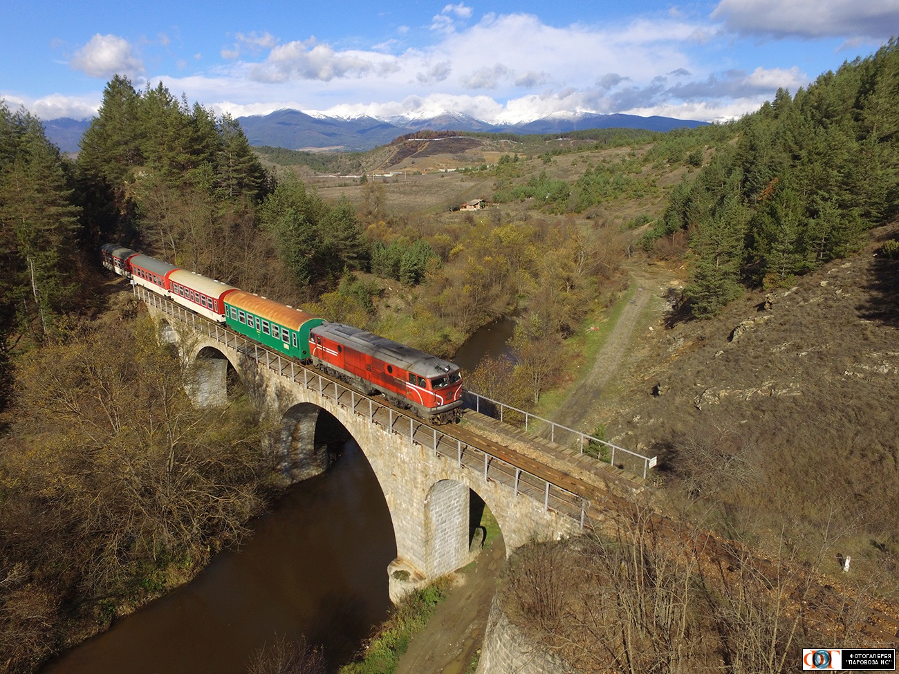 | Тепловоз 77.002-4 с поездом "Вихрен" на мосту через горную реку. Перегон Гулийна Баня - Генерал Ковачев. Родопская УЖД, Болгария Автор: лёха | Фото сделано 10.XI.2016, опубликовано 13.XI.2016.