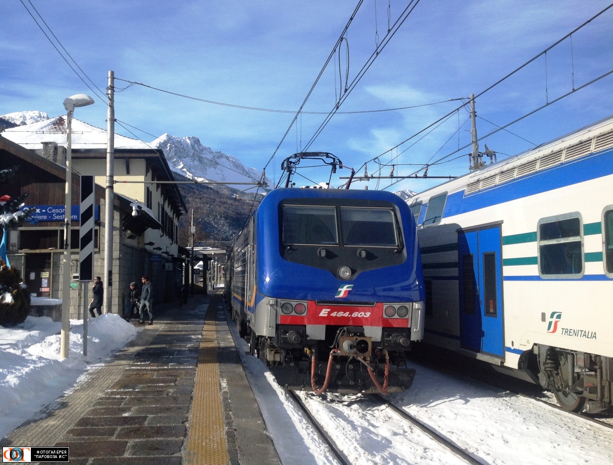 | Электровоз E464-603 с региональным поездом на станции Улькс (Oulx), Италия Автор: Самофалов Олег | Фото сделано 31.I.2015, опубликовано 9.VI.2017.