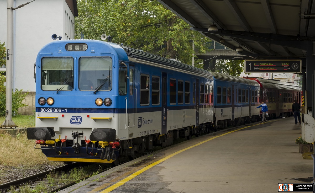 | Вагон с кабиной управления 80-29.006-1 с пассажирским поездом R1124 на станции Острава-Главный вокзал, Чехия Автор: ES499 | Фото сделано 26.IX.2015, опубликовано 4.I.2018.