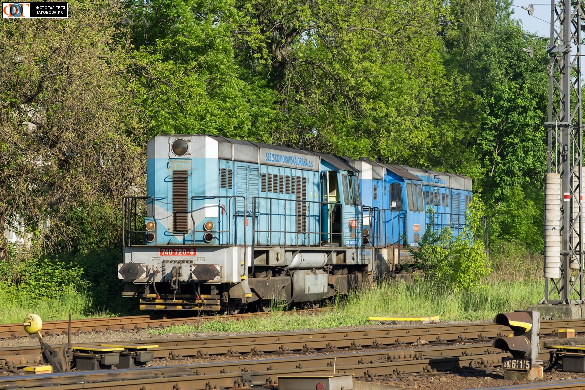 | Тепловозы 740.720-8 и 740.645-7 компании "SMD" на подъездном пути бывшей "Báňské dráhy", сейчас используется компанией SMD, город Острава, Чехия Автор: ES499 | Фото сделано 7.V.2018, опубликовано 22.V.2018.