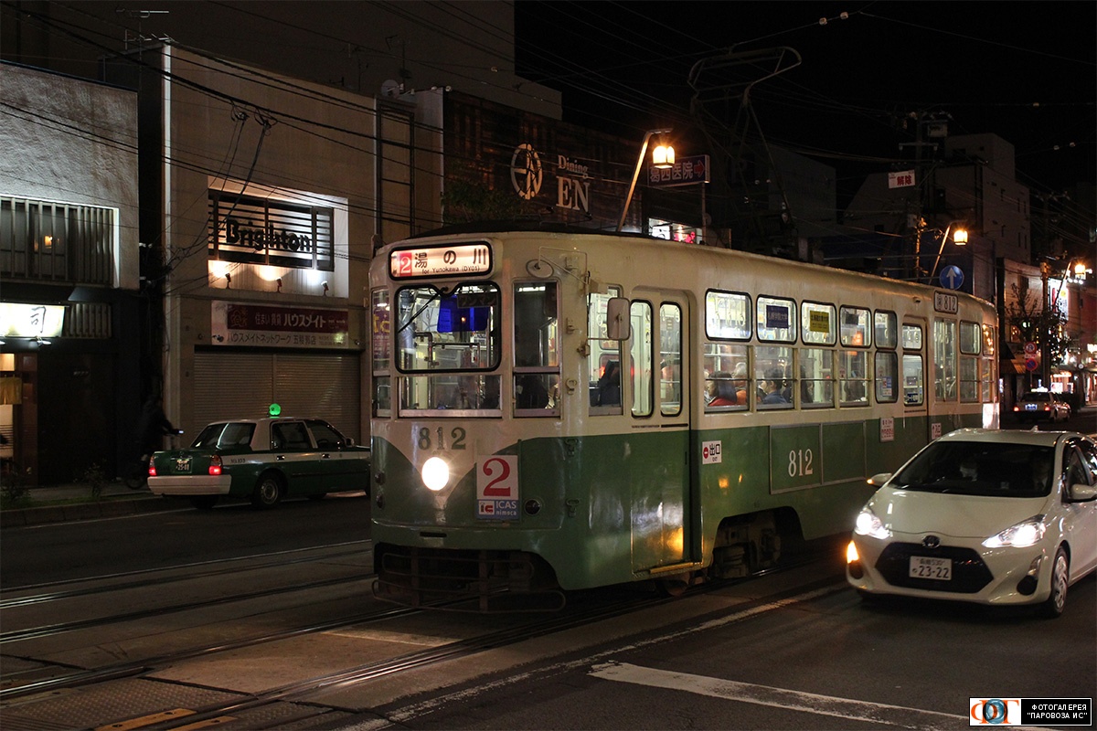 | Вечерний трамвай. 800 серии, №812, последний из неё, 1965 года постройки. г. Хакодате, преф. Хокайдо, Япония Автор: Старшая сестра 2.0 | Фото сделано 8.V.2018, опубликовано 22.VIII.2018.