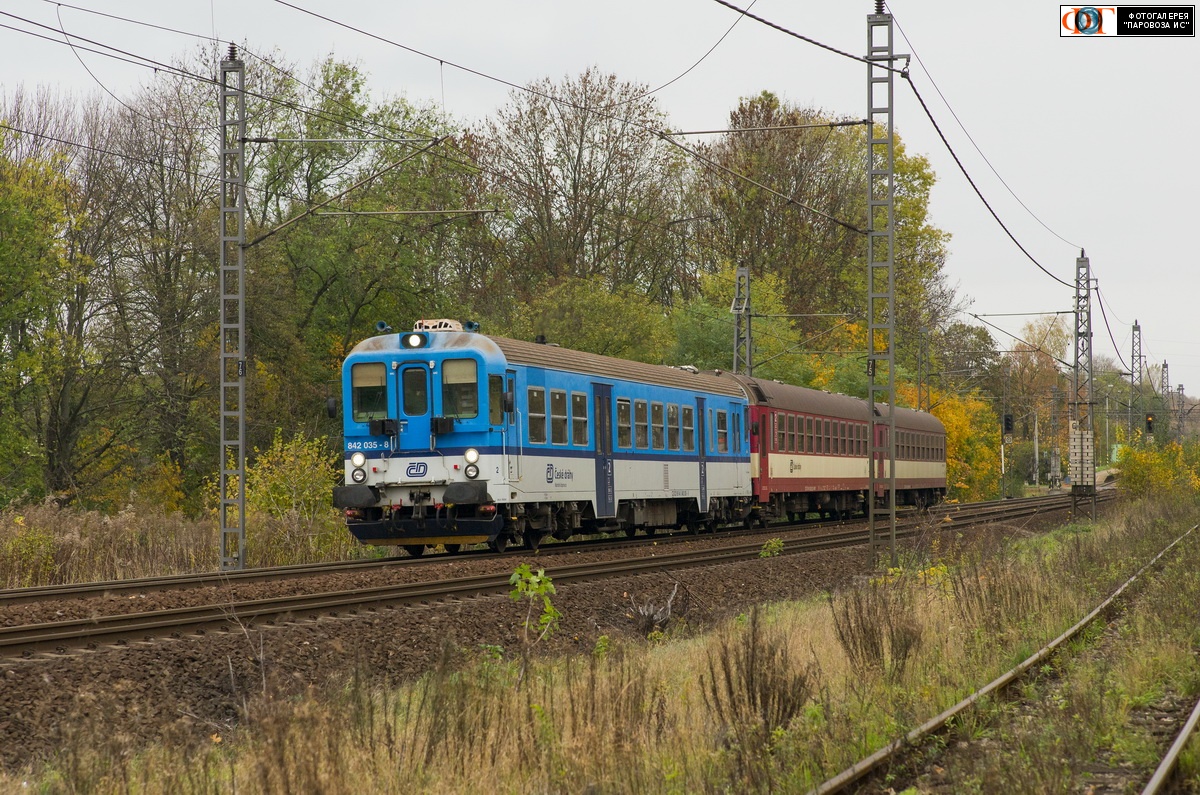 | Автомотриса 842.035-8 с поездом Os3108 на перегоне Острава-Кунчичкы - Острава-Кунчице, Чехия Автор: ES499 | Фото сделано 25.X.2018, опубликовано 11.XI.2019.