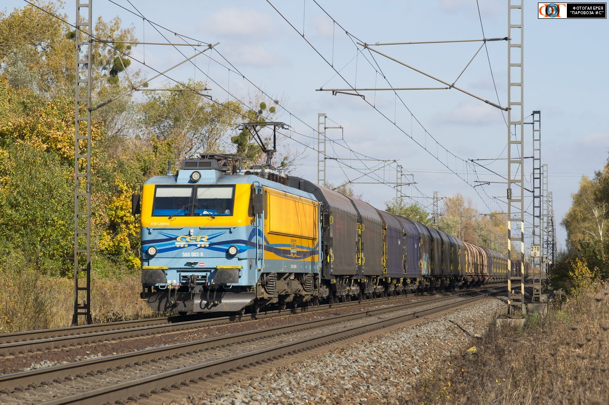 | "Бельгийка". Электровоз 365.002-5 компании "CER Cargo" с грузовым поездом на перегоне Богумин - Острава-Главный вокзал, Чехия Автор: ES499 | Фото сделано 24.X.2021, опубликовано 2.XI.2021.