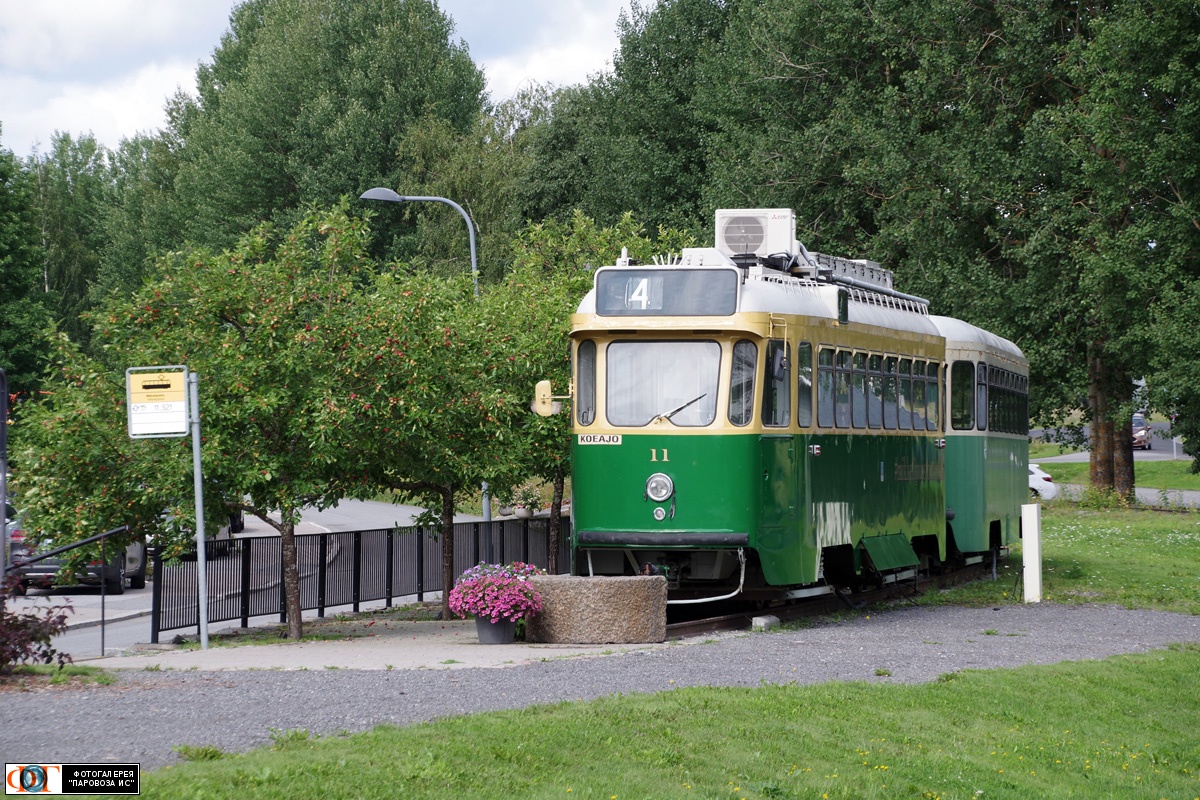 | Трамвай Karia SAT HM V № 11 с прицемным вагоном Karia HP II № 521 в городском парке г. Миккели (Mikkelipuisto), Южное Саво, Финляндия Автор: tallart | Фото сделано 3.VIII.2024, опубликовано 19.VIII.2024.