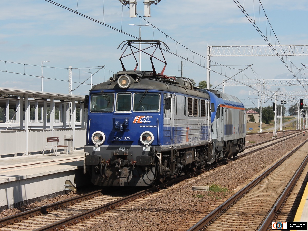 | Электровоз EP07-375 с перегоняемым на ремонт тепловозом SU160-007, ст. Рациборы, линия Варшава - Белосток, Польша Автор: Ал | Фото сделано 5.VII.2025, опубликовано сегодня.