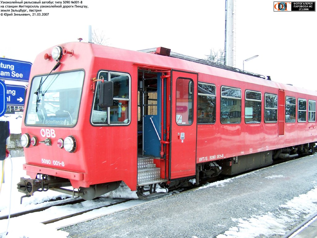 | Рельсовый автобус типа 5090 № 001-8, ст. Миттерсилль узкоколейной дороги Пинцгау, Австрия Автор: Зинькевич Ю. | Фото сделано 21.III.2007, опубликовано 14.IV.2007.