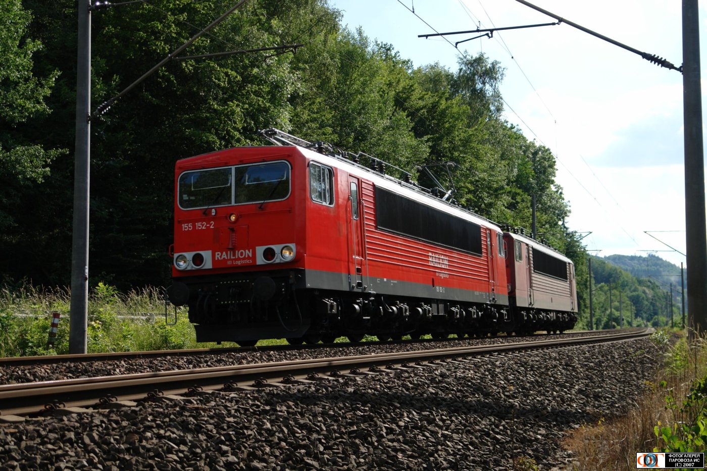 | Электровозы BR 155.152-2 и BR 155.160-5, Унтерлокуитц, Германия/Тюрингия Автор: Сергей Остапенко / Sergej Ostapenko | Фото сделано 17.VI.2007, опубликовано 5.IX.2007.
