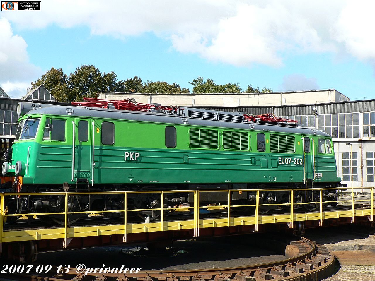 | Электровоз EU07-302 на оборотном круге в депо Щецинек, Польша Автор: Zb. Antonowicz- privateer | Фото сделано 13.IX.2007, опубликовано 14.IX.2007.