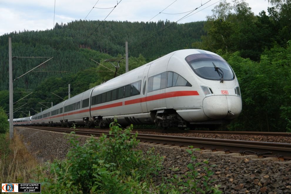 | Сцеп из двух электропоездов BR 411 направляется в Заальфельд, Унтерлокуитц, Германия/Тюрингия Автор: Сергей Остапенко / Sergej Ostapenko | Фото сделано 1.VII.2007, опубликовано 30.X.2007.