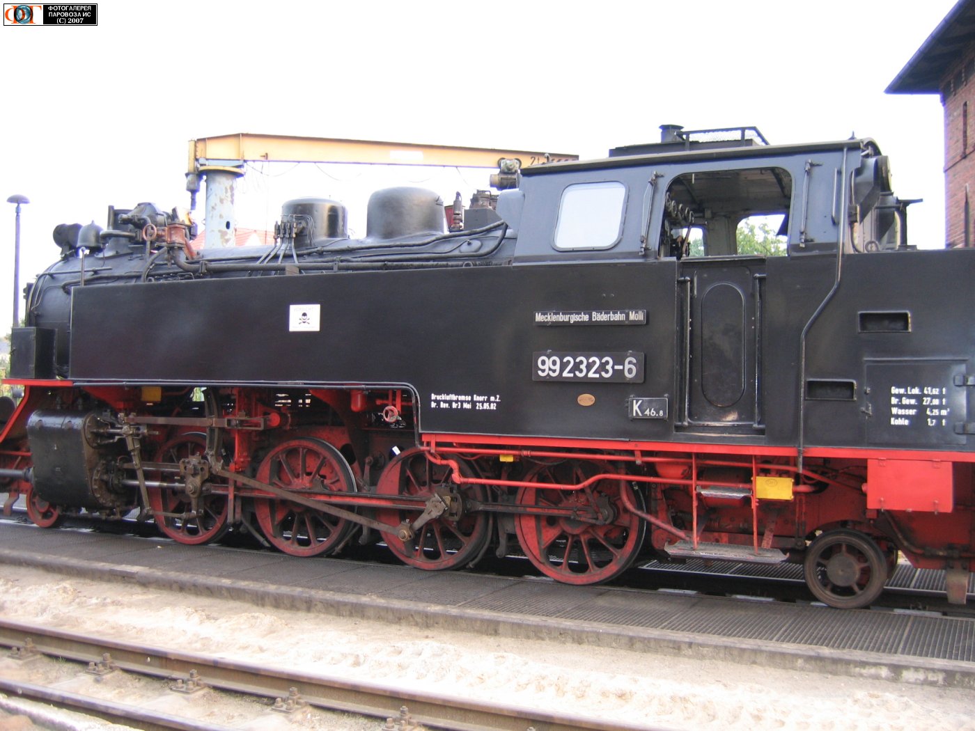 | Паровоз 99-2323.6 действующей исторической узкоколейки, Германия/Мекленбург-Померания Автор: Станислав | Фото сделано 7.IX.2005, опубликовано 17.XII.2007.