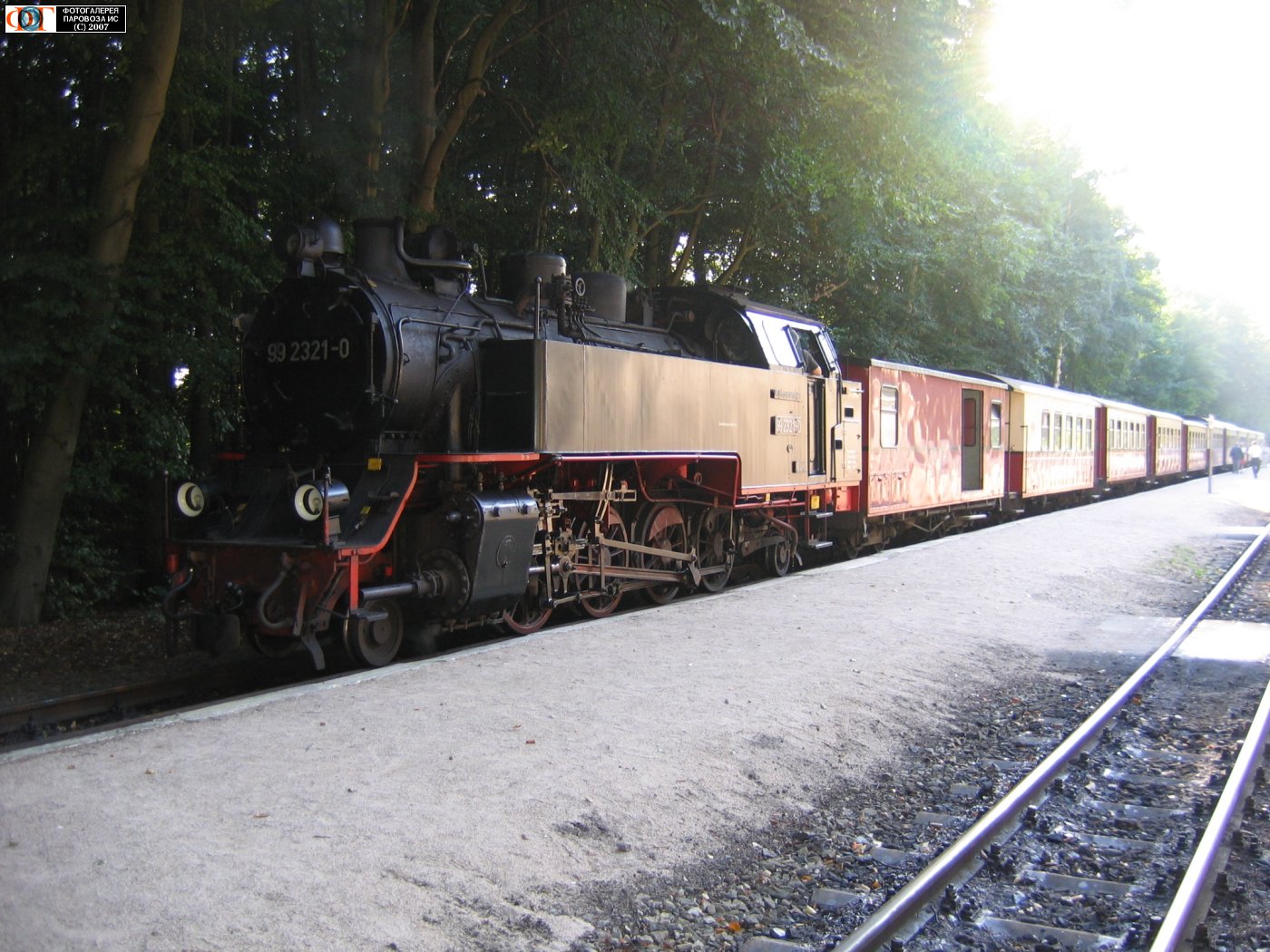 | Паровоз 99.2321-0 с пассажирским ретросоставом на ст.Хейлингендамм исторической узкоколейной дороги "Молли", Германия/Мекленбург-Померания Автор: Станислав | Фото сделано 5.IX.2005, опубликовано 31.XII.2007.