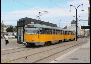 | Трамвай "Татра T4D" №1126 с прицепным вагоном "Татра B4D" №209 на остановке возле железнодорожного вокзала, г. Арад, 19.VII.2016 Ал