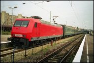 | Электровоз 145.070-9 с поездом "Саратов - Берлин" из вагонов "Аммендорф". Ст. Берлин-Лихтенберг, IX.2001 М.Шварц