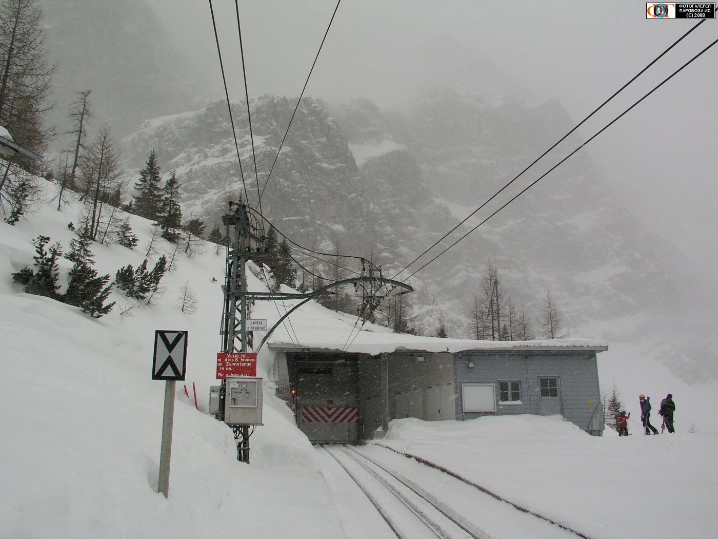 | Въезд в 4,8-километровый туннель, проходящий под пиком Цугшпиц (Zugspitz), платформа Риффельрисс (Riffelriss), Баварская зубчатая дорога (Bayeriche Zugspitzbahn), Германия/Бавария Автор: Eskander | Фото сделано II.2006, опубликовано 14.III.2008.