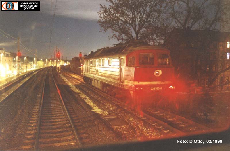 | Тепловоз 232.590-0, Эйзенах, Германия/Тюрингия Автор: Dirk Otte | Фото сделано II.1999, опубликовано 19.V.2008.