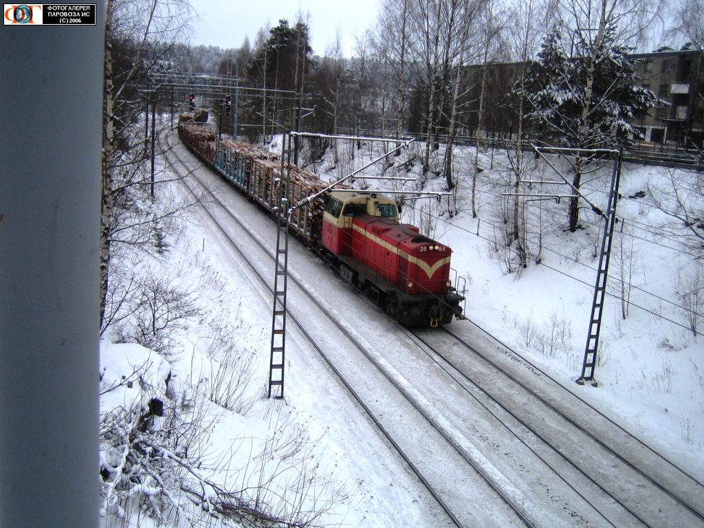 | Тепловоз Dv12-2564 с грузовым поездом, г. Тампере, Финляндия Автор: Хайми Л. | Фото сделано 14.II.2006, опубликовано 10.X.2006.