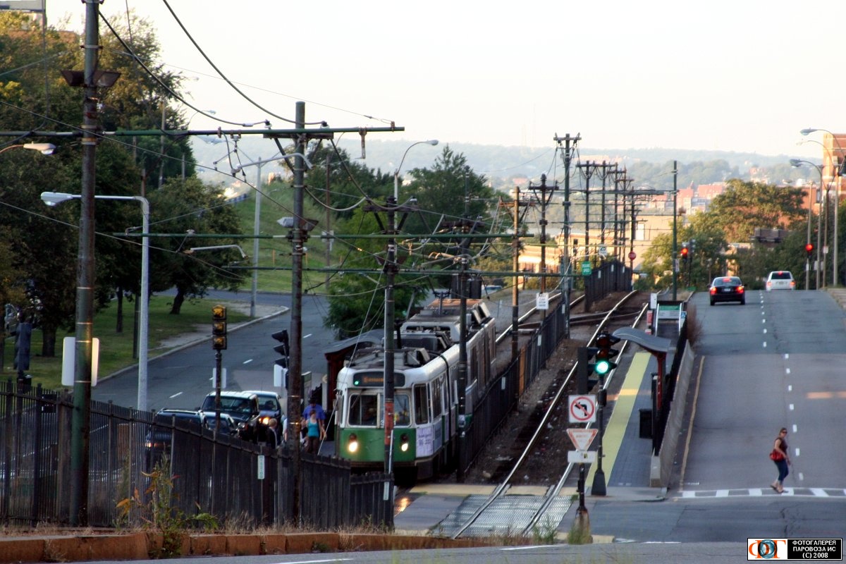 | Трамвай маршрута "B", Коммонвелс-Авеню, Бруклайн, США/Массачусетс Автор: Зиновьев Д. | Фото сделано 24.VIII.2008, опубликовано 26.VIII.2008.