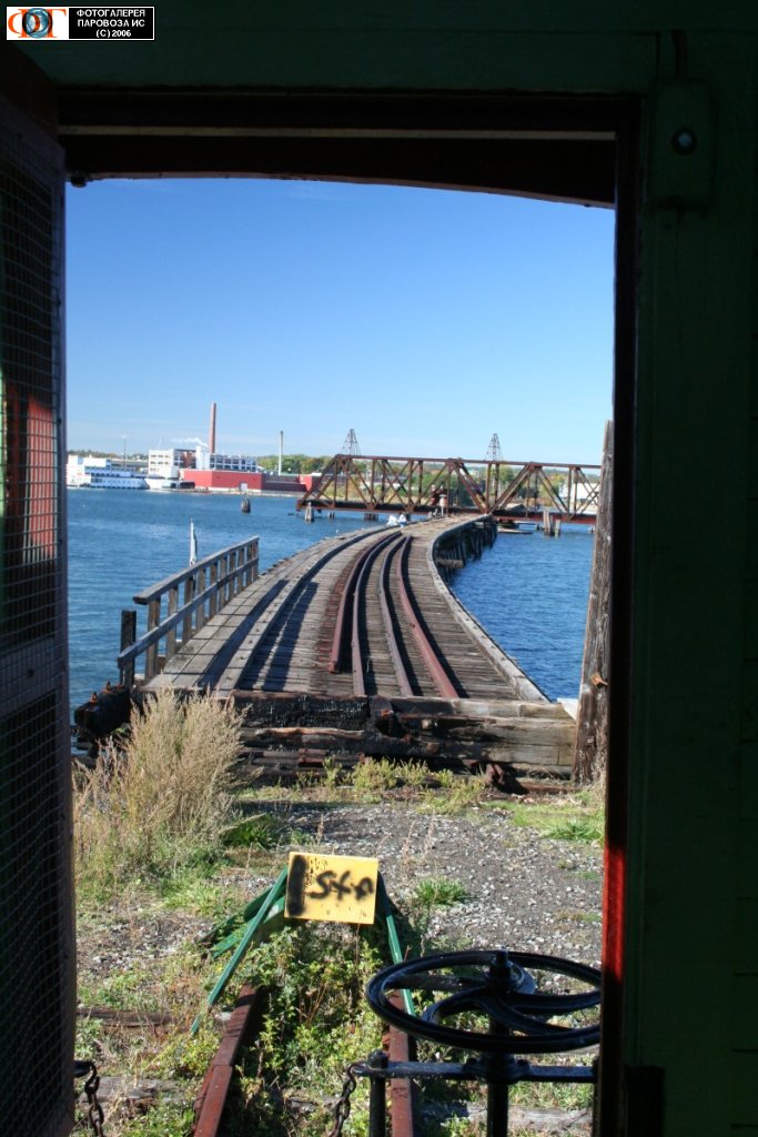 | Заброшенный разводной мост компании GTW через залив Бэк-Коув из окна служебного вагона узкой колеи, Портленд, США/Мэн Автор: Зиновьев Д. | Фото сделано 9.X.2006, опубликовано 11.X.2006.