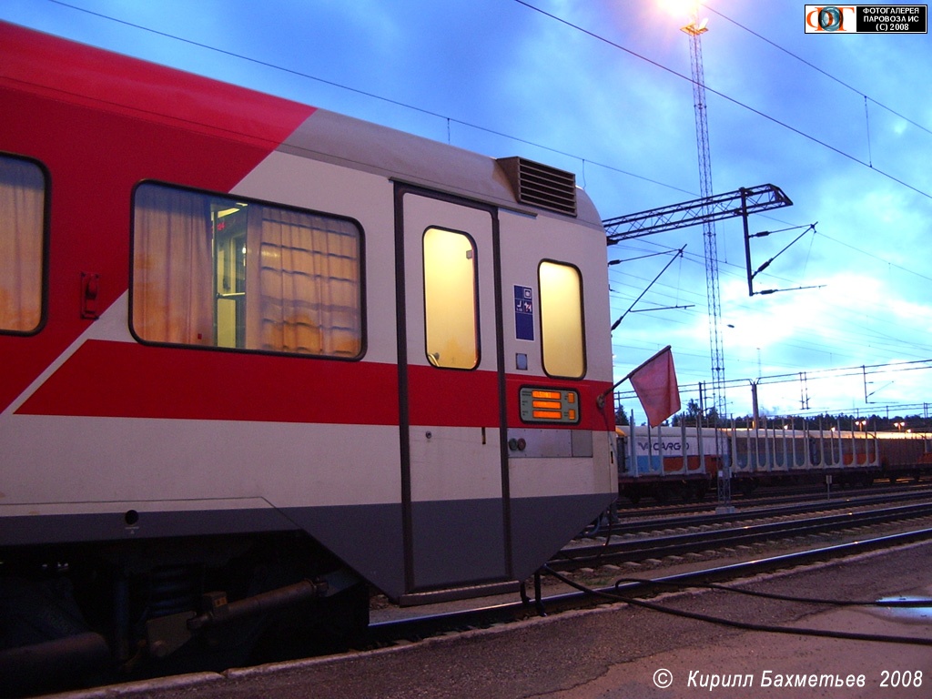 | Вагон поезда Хельсинки – Иматра, ст. Иматра-товарная, Финляндия Автор: Кирилл Бахметьев | Фото сделано 18.VI.2008, опубликовано 28.X.2008.