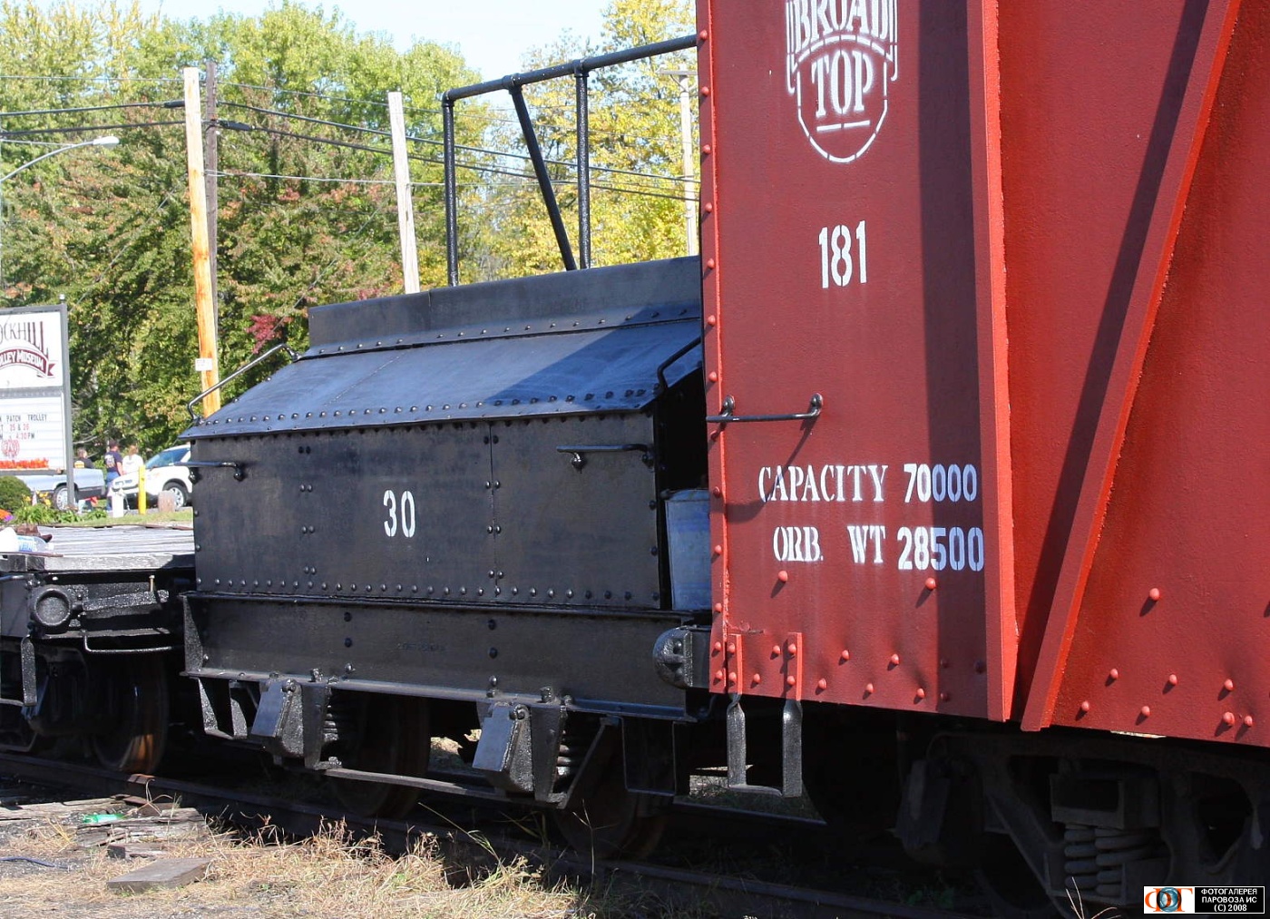 | Узкоколейный тест-весовой вагон № 30 компании "Е.В.Т." 1916 года. Орбизония, США/Пенсильвания Автор: Александр Белоусов | Фото сделано 12.X.2008, опубликовано 15.XI.2008.