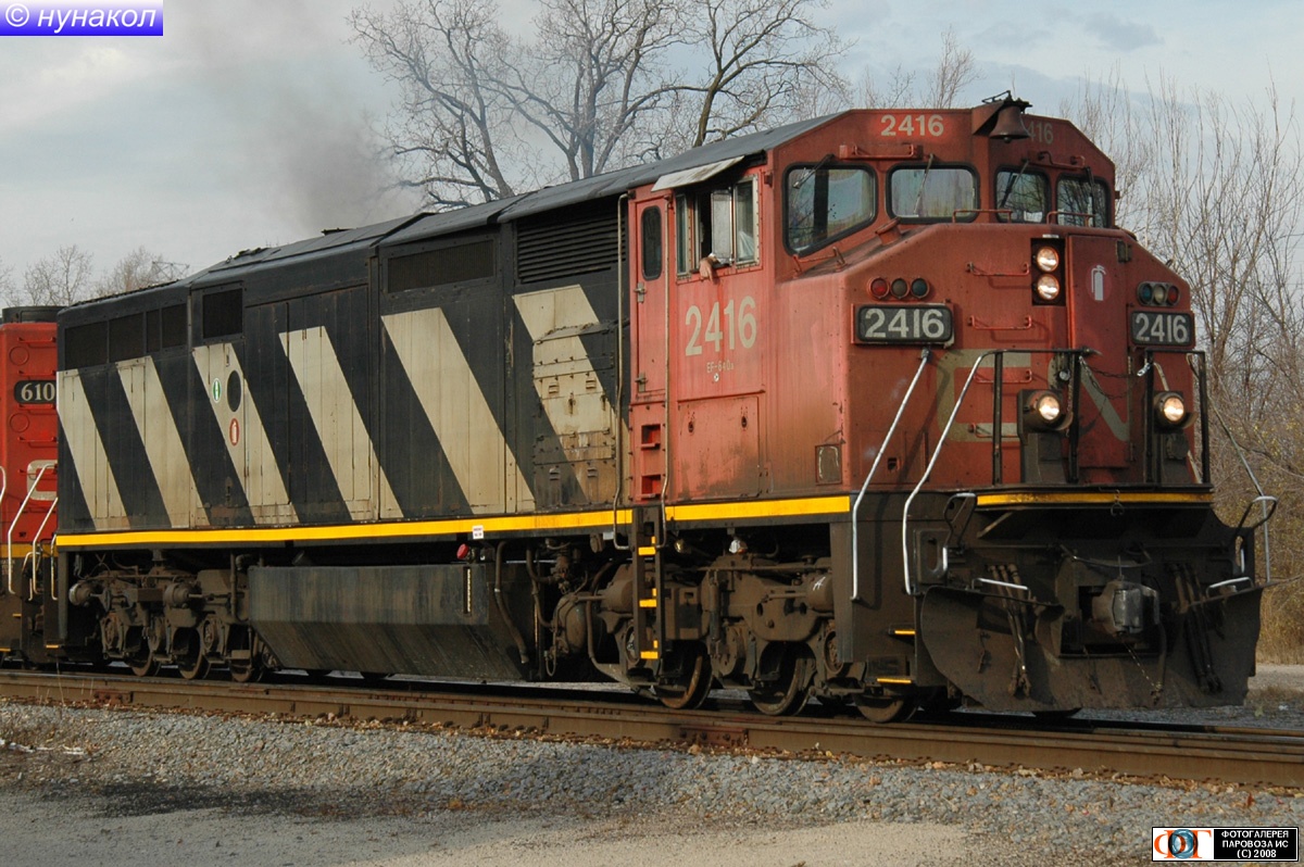 | Тепловоз C40-8M-2416 компании “Canadian National”. Северная Фонд-дю-Лак, США/Висконсин Автор: Нунакол | Фото сделано 5.XI.2008, опубликовано 18.XI.2008.