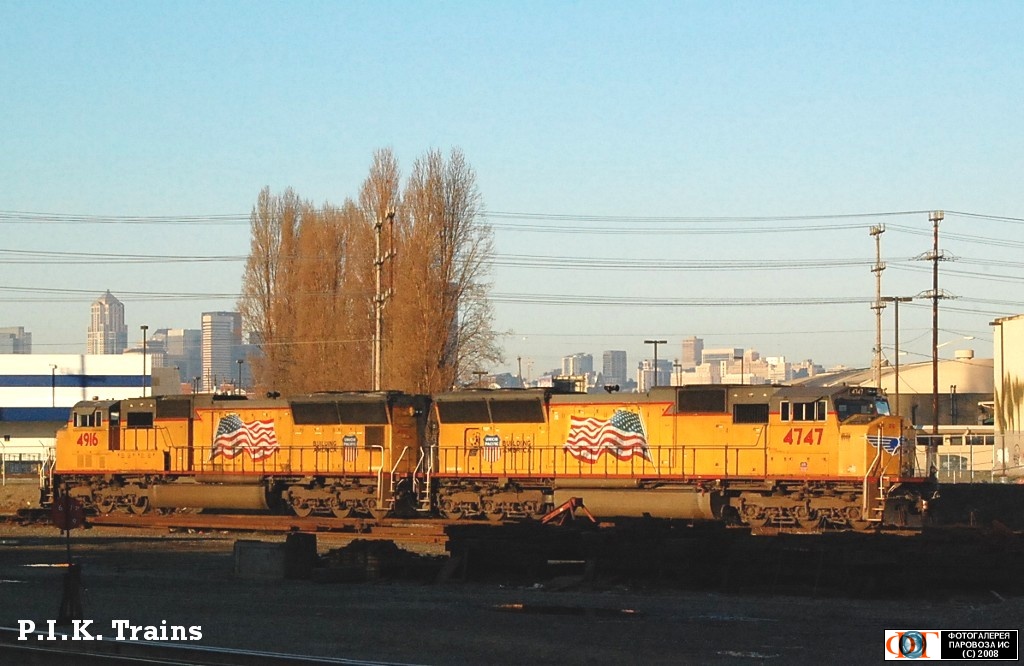 | Тепловозы SD70M-4916 и 4747 компании "Юнион Пасифик", г. Сиэтл, США/Вашингтон Автор: Pavel Krivoruchko | Фото сделано 17.I.2009, опубликовано 19.I.2009.