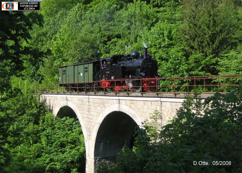 | Паровоз 99-6101 на виадуке, окрестности Ильфельда, Германия/Тюрингия Автор: Dirk Otte | Фото сделано 22.V.2008, опубликовано 26.I.2009.