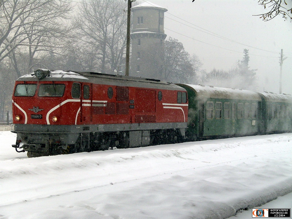| Тепловоз 77005-7, ст. Банско, Болгария Автор: Игорь aka ТЭ3 (колл.) | Фото сделано 2.I.2009, опубликовано 5.II.2009.