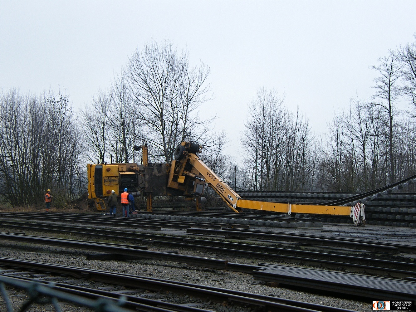| Опрокинувшийся автокран "Татра" на ст. Блудов (Bludov), Чехия Автор: šakal | Фото сделано 6.III.2009, опубликовано 30.VII.2009.