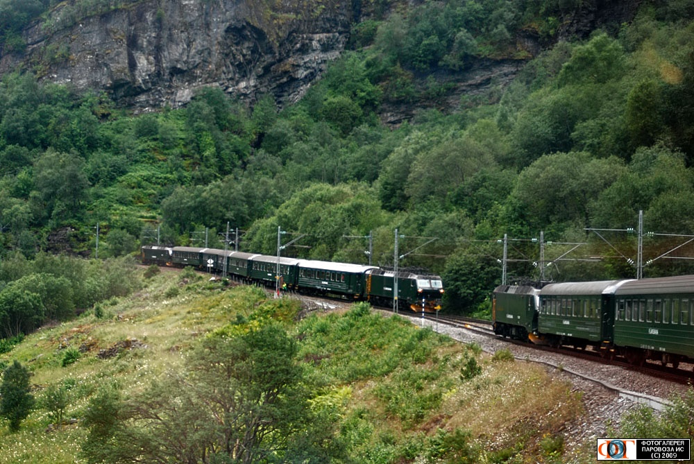 | Скрещение поездов на разъезде Береквам, Фломсбана, Норвегия Автор: Alexey | Фото сделано 23.VII.2009, опубликовано 2.IX.2009.
