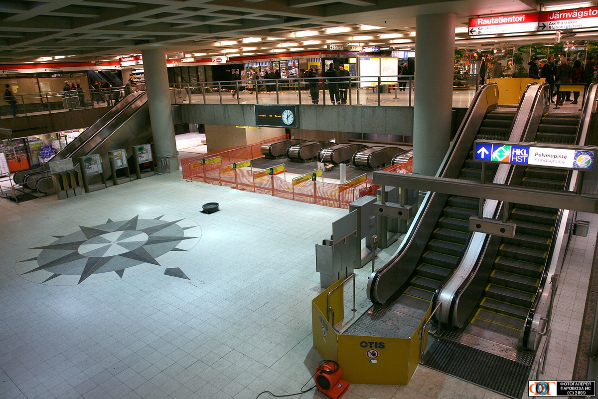 | Прорыв водопровода в хельсинском метро. Станция под ж/д вокзалом закрылась надолго. Эту площадь перед эскалаторами (т. н. "Компас") обещают открыть уже в понедельник, Финляндия Автор: Станислав Воронин | Фото сделано 13.XI.2009, опубликовано 15.XI.2009.