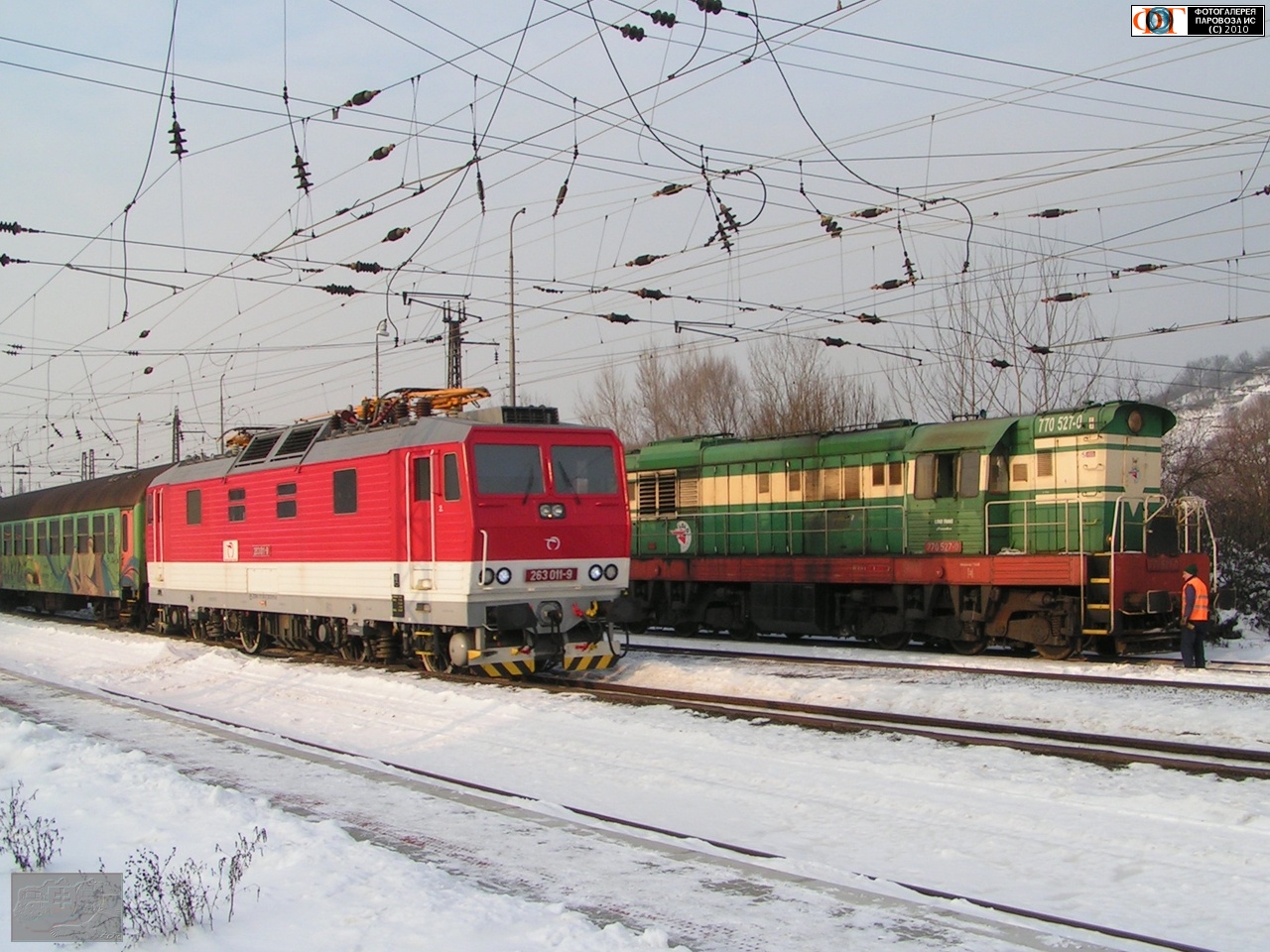 | Электровоз 263.011-9 и тепловоз 770.527-0. Cт. Братислава-Ламач, Словакия Автор: zoric | Фото сделано 23.I.2010, опубликовано 24.I.2010.