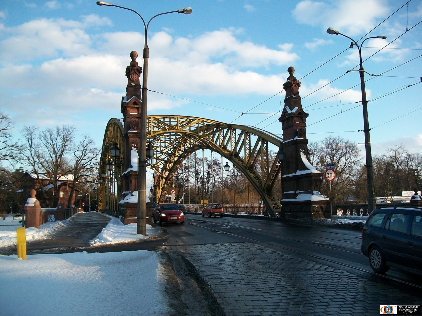 | Трамвайные пути на Звежинецком мосту (Most Zwierzyniecki), Вроцлав, Польша Автор: Viggen | Фото сделано 30.I.2010, опубликовано 4.VI.2010.