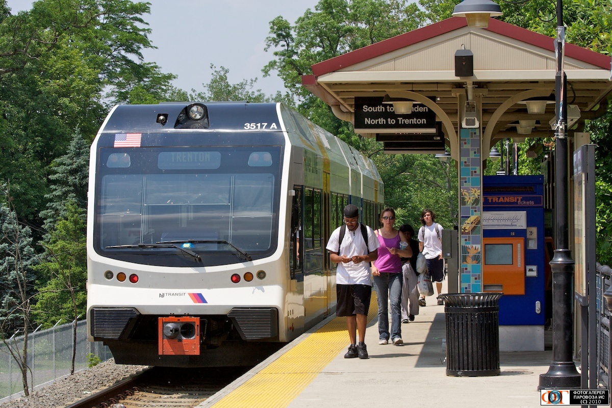 Дизельный трамвай № 3517 линии "River Line" Трентон-Камден компании "NJ Transit". Бордентаун