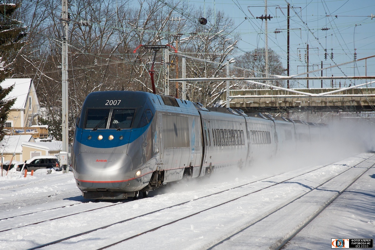 | Электровоз Acela-2007 высокоскоростного поезда компании Amtrak, ст. Принстон-Джанкшн, Вест-Виндзор, США/Нью-Джерси Автор: Александр Белоусов | Фото сделано 11.II.2010, опубликовано 11.VII.2010.