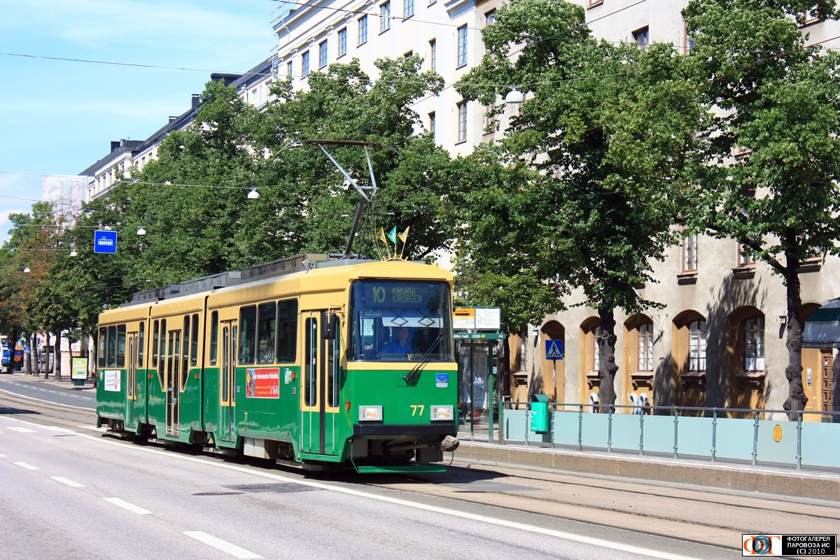 | Трамвай "Валмет" ("Valmet") Nr II+ №77, маршрут 10, проспект Маннергейма, г. Хельсинки, Финляндия Автор: Григорий Егоров † | Фото сделано 10.VII.2010, опубликовано 12.VII.2010.