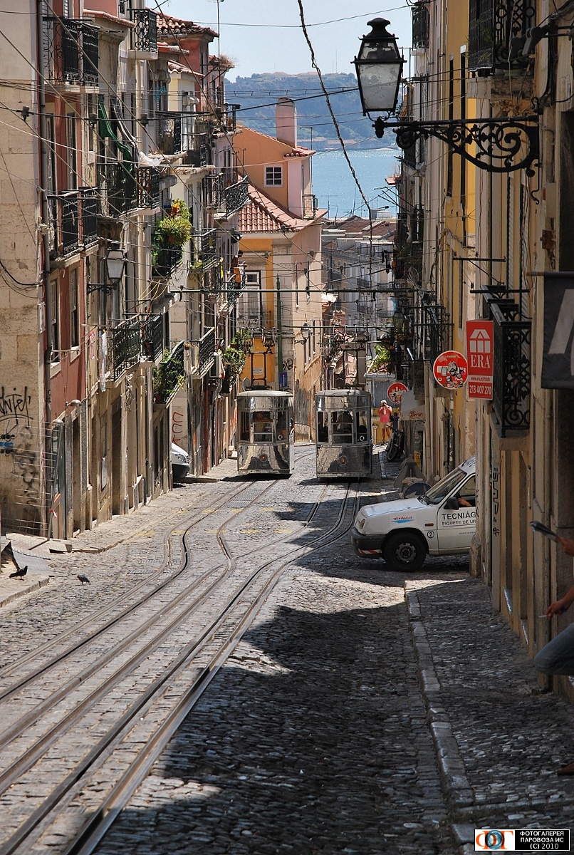 | Вагоны фуникулера Bica на разъезде, Лиссабон, Португалия Автор: Сергей Холодилов | Фото сделано 2.IX.2010, опубликовано 24.IX.2010.
