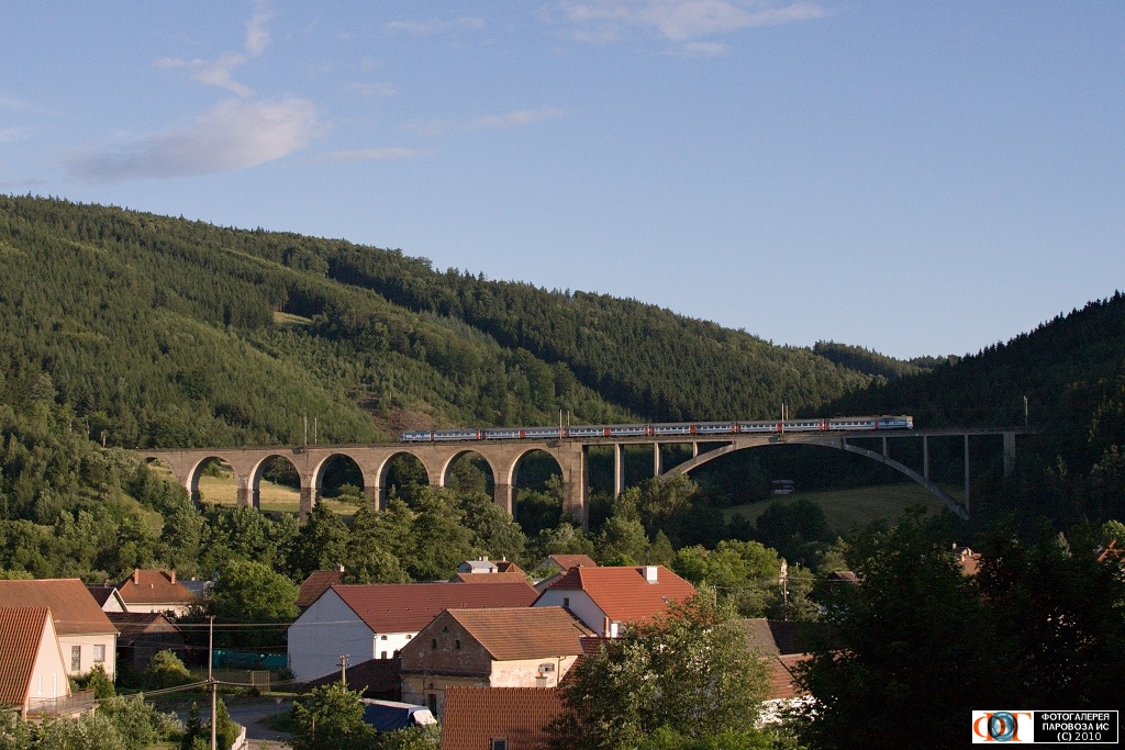 | Пригородный поезд Ждяр-над-Сазавоу - Брно. Мост через долину речки Либоховка у деревни Нижнее Поляны (Dolní Loučky). Мост длины 400 м, макс. высоты 40 м. Линия №250, перегон Кржижанов - Тишнов, Чехия Автор: Pavel Dokoupil | Фото сделано 24.VI.2007, опубликовано 4.X.2010.