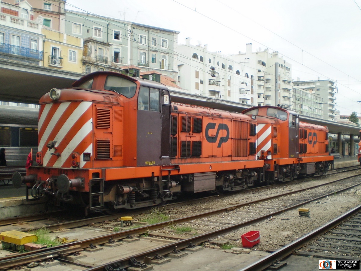 | Сплотка тепловозов №№ 1442 и 1427 на ст. Санта Аполония, г. Лиссабон, Португалия Автор: Ал | Фото сделано 23.VIII.2010, опубликовано 15.X.2010.