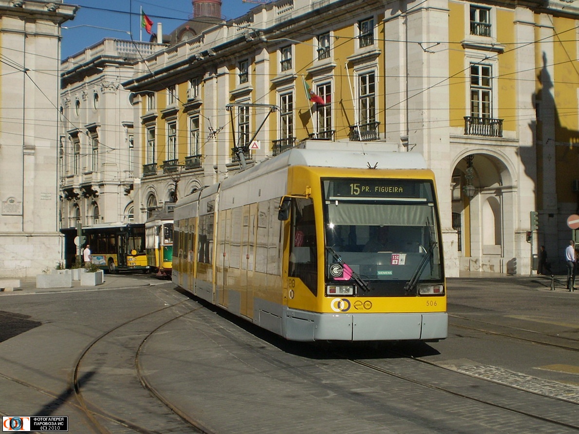 | Трамвай "Сименс" № 506 на пл. Коммерсиу, г. Лиссабон, Португалия Автор: Ал | Фото сделано 25.VIII.2010, опубликовано 7.XI.2010.