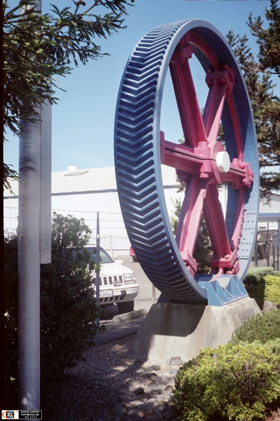 | Зубчатое колесо тросового трамвая в Сан-Франциско в 1873-1965 годах перед зданием компании "D. W. Nicholson Corporation", которая его заменила. Хейвард, США/Калифорния Автор: Евгений Лысый | Фото сделано IX.2003, опубликовано 24.I.2011.