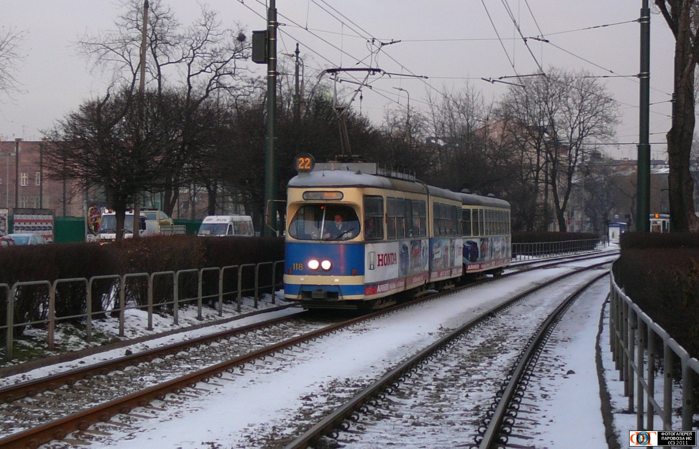 | Трамвай MAN GT6 №118 на ул.Дитла. Краков, Польша Автор: Адмирал | Фото сделано 5.I.2011, опубликовано 12.II.2011.