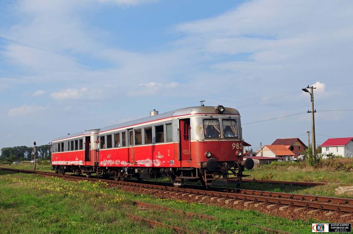 | Автомотрисы 77-0983 и 77-0954 прибывают на ст. Жебел (Jebel) с пригородным поездом Тимишоара – Стамора-Моравита (Timisoara – Stamora Moravita), Румыния Автор: Martin Haefliger | Фото сделано 16.IX.2010, опубликовано 14.II.2011.