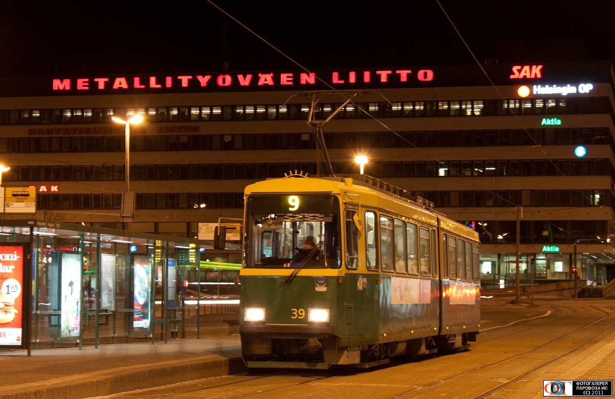 | Трамвай "Валмет" ("Valmet") Nr1 №39, маршрут 9, Хаканиеми (Hakaniemi), Финляндия Автор: Григорий Егоров † | Фото сделано 25.III.2011, опубликовано 1.IV.2011.