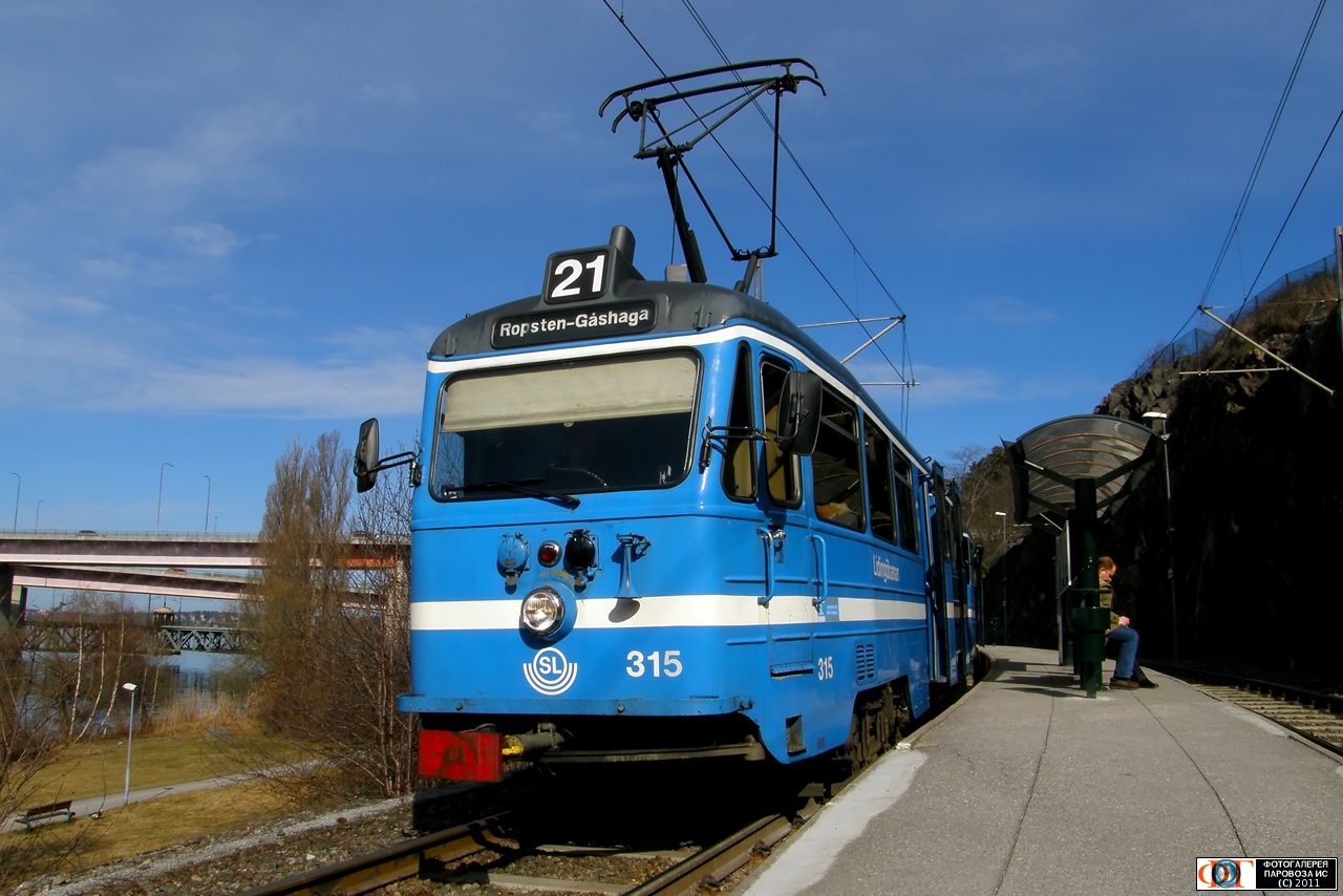 | Трамвайный вагон типа A30B №315 на остановке Торсвик (Torsvik), муниципалитет Лидинго, Стокгольм, Швеция Автор: Bonifācijs | Фото сделано 14.IV.2011, опубликовано 24.IV.2011.