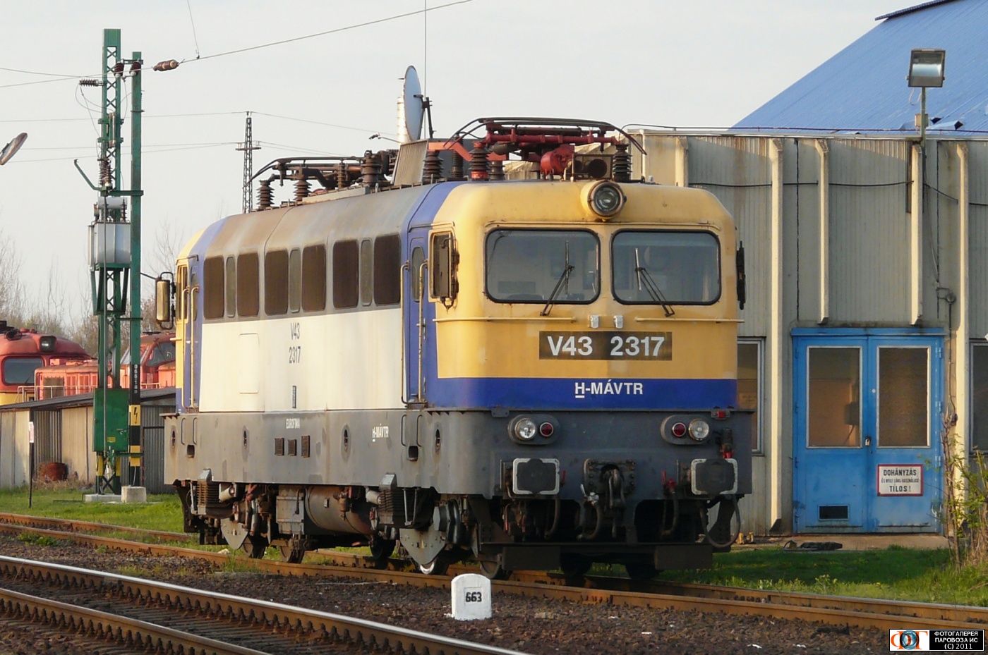 | Электровоз V43-2317 на стоянке в депо Захонь, Венгрия Автор: Михаил Кульгейко | Фото сделано 16.IV.2011, опубликовано 4.V.2011.