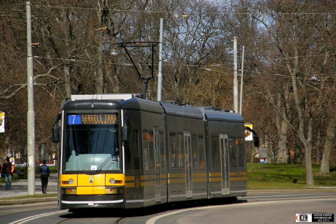 | Трамвай "Bombardier Flexity Classic" №33, Юргордсвеген (Djurgårdsvägen), Стокгольм, Швеция Автор: Bonifācijs | Фото сделано 14.IV.2011, опубликовано 6.V.2011.