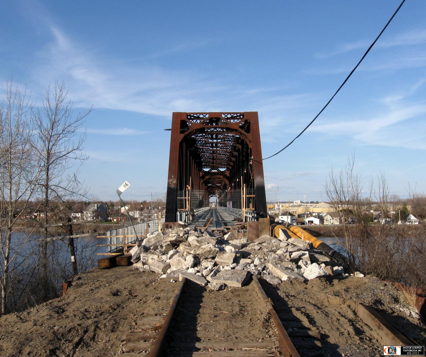 | Железнодорожный мост Ле-Пон-Нуар (Le Pont Noir) через реку Гатино (Gatineau) в процессе реконструкции, Гатино, Квебек, Канада Автор: Jean | Фото сделано 24.IV.2011, опубликовано 7.V.2011.